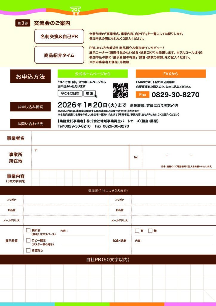 地域内外の事業者との業種・規模を超えた出会いを求める事業者・生産者の方等におススメです!