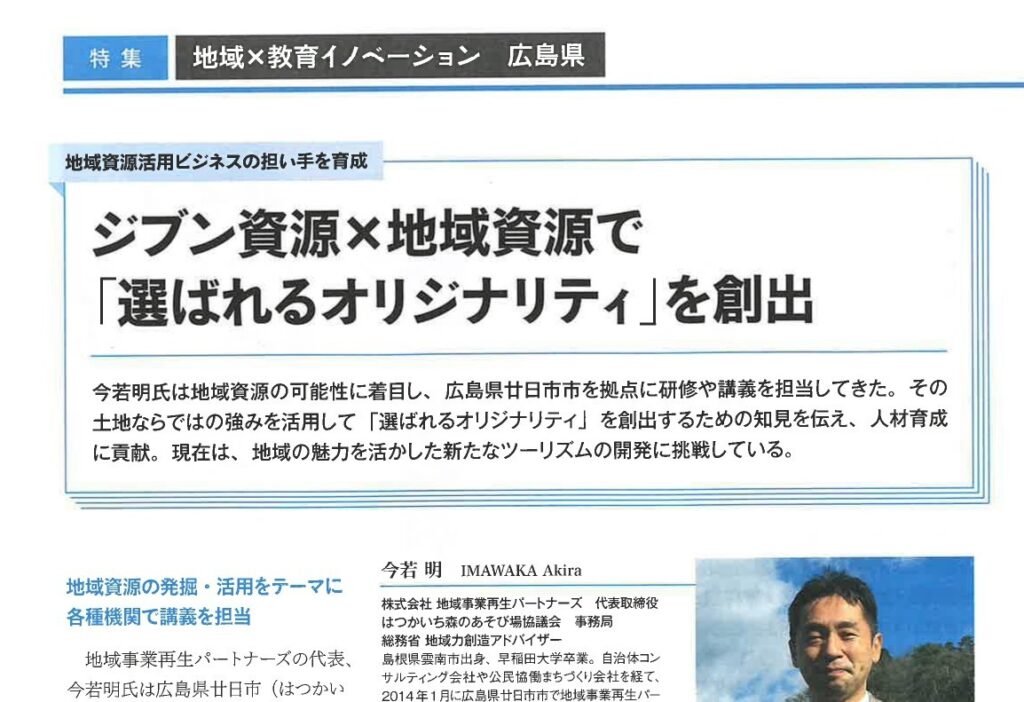 月刊「先端教育」2026年2月号の『 特集【地域×教育イノベーション】広島県「学び」を軸に持続可能な地域へ』に 今若明のインタビュー記事が掲載されました。 内容を紹介します。地域資源活用ビジネスの担い手を育成『ジブン資源 …